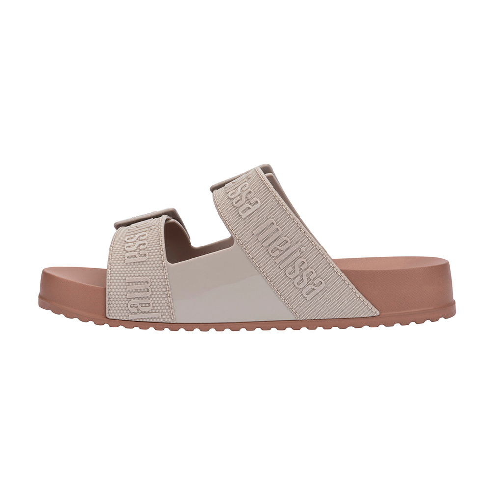 編織寬雙帶平底拖鞋 - 藕粉