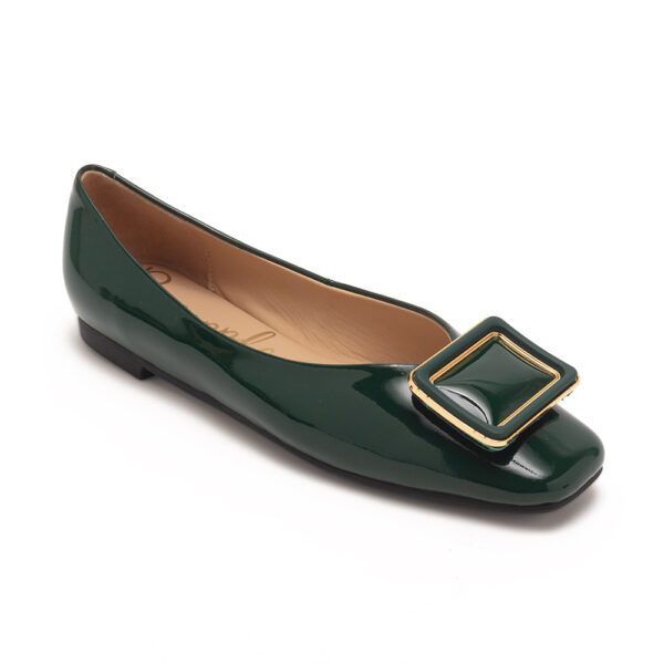 真皮方扣飾平底鞋FLODY - 鏡綠色