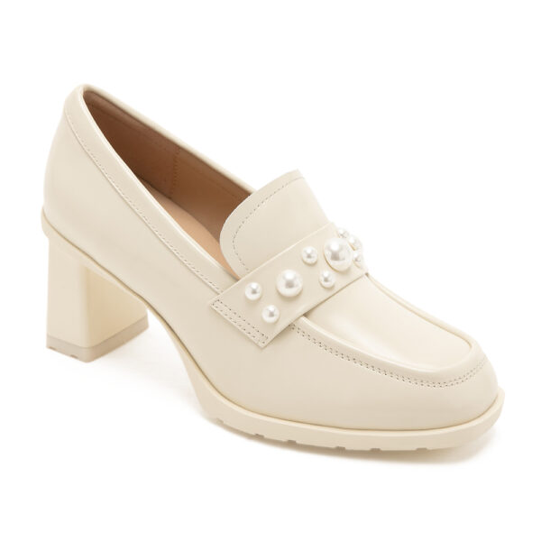 典雅珍珠粗跟樂福鞋EBBO - 鏡白色