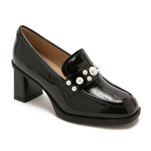 典雅珍珠粗跟樂福鞋EBBO - 鏡黑色