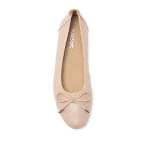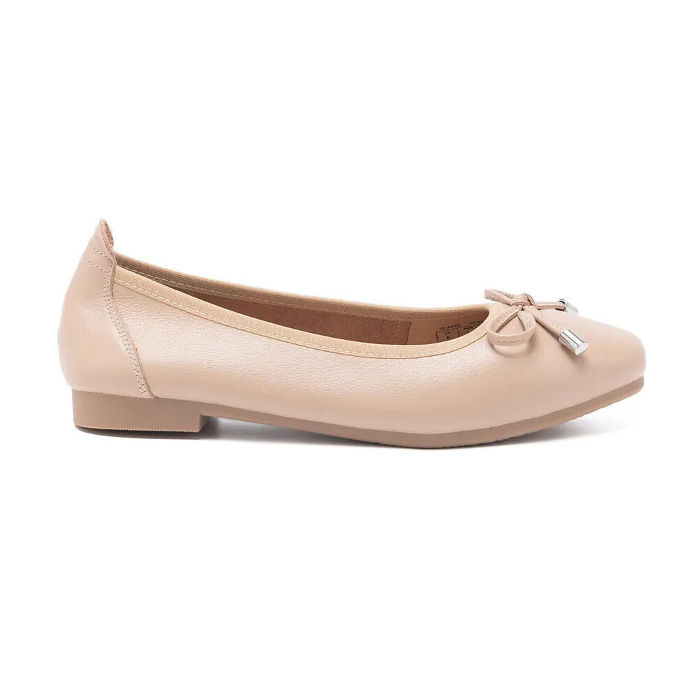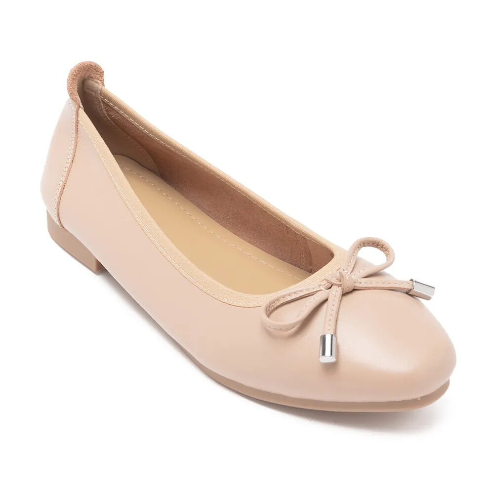 DARDA 真皮蝴蝶結平跟娃娃鞋 - 杏色, 6