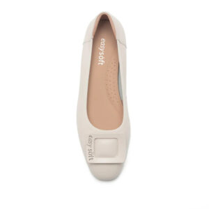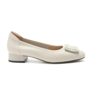 GASHA 真皮品牌方釦方頭低跟鞋 - 白色, 10