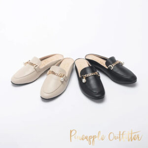 / RHEA 珍珠金屬鍊真皮穆勒拖鞋
