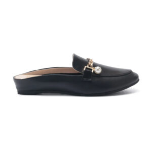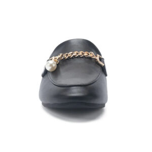 RHEA 珍珠金屬鍊真皮穆勒拖鞋