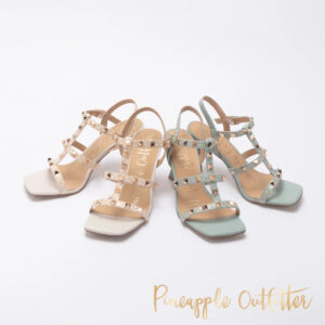 ICHIRO 蛇紋鉚釘方頭高跟涼鞋