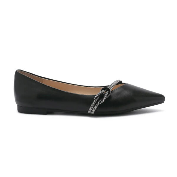 FATMA 真皮鑽條尖頭平底鞋 - 黑色, 5