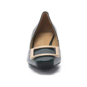 GOMEZ 金屬釦真皮方頭粗中跟鞋