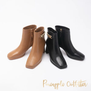 BLANCA 羊皮金鍊拉鍊中跟短靴