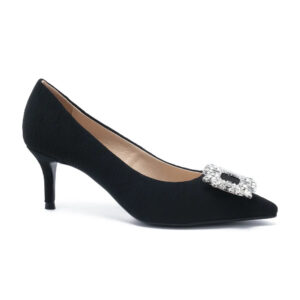 GEET 經典方鑽釦尖頭中跟鞋 - 黑色, 7