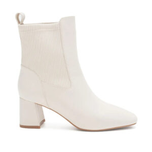 BIRGIT 拼接真皮方頭中跟短套靴 - 白色, 8