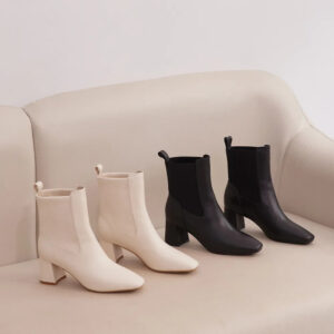 BIRGIT 拼接真皮方頭中跟短套靴