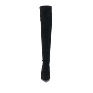 LEW 絨布高跟尖頭過膝套靴