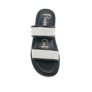 RUSSO 亞麻拼接雙帶拖鞋 - 黑色, 8