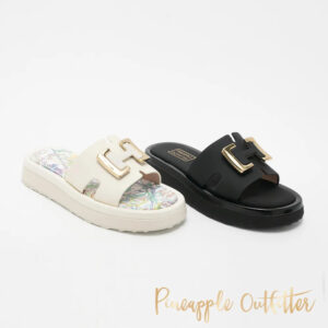 / REIJO真皮金屬釦印花厚底拖鞋