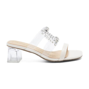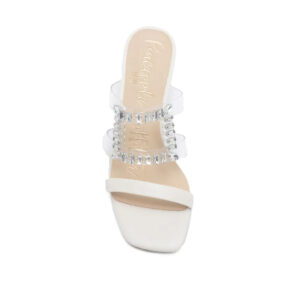 RAHELA 透明方形水鑽涼跟鞋