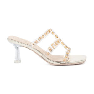 RADKO 透明鉚釘水鑽高跟涼拖鞋 - 金色, 10