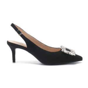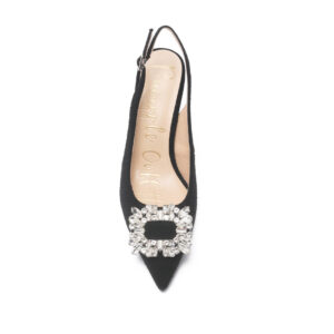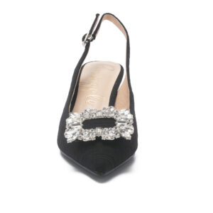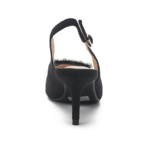 SALOSO 小香布面方鑽釦尖頭中跟涼鞋 - 黑色, 9
