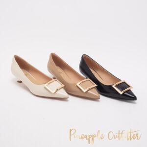 簡約方扣真皮低跟鞋PALTI