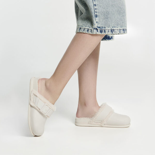 泰迪毛毛方形扣飾穆勒鞋