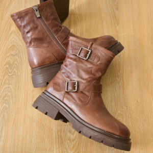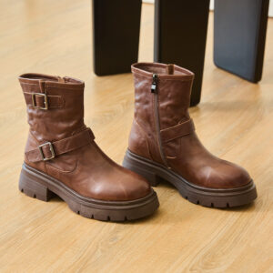 雙扣仿舊真皮短靴BIJOU