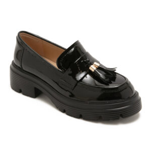 鏡面流蘇真皮厚底樂福鞋ELIYA