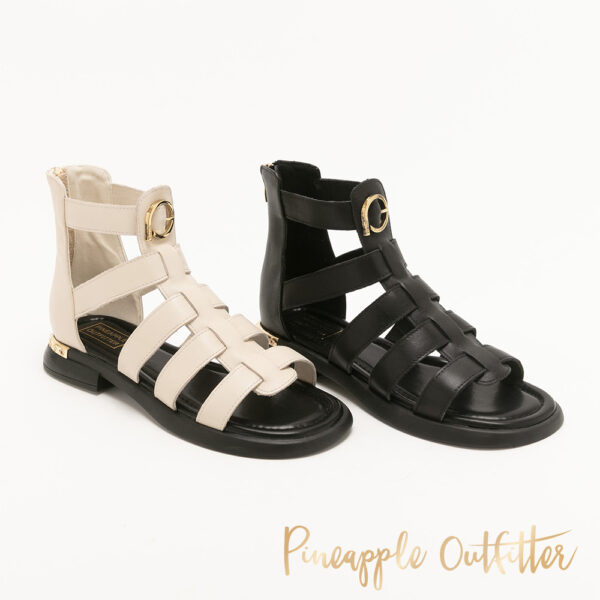後拉鍊質感飾扣真皮羅馬涼鞋IMRI