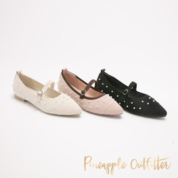 可愛珍珠繫帶尖頭瑪莉珍鞋DARK