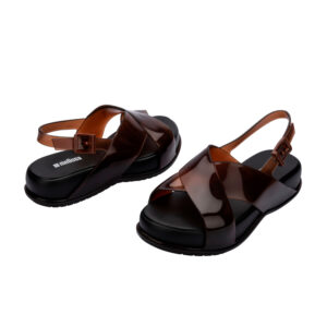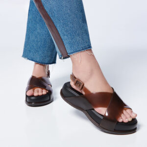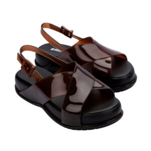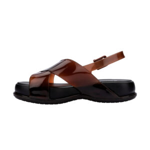 / 交叉寬帶亮面涼鞋