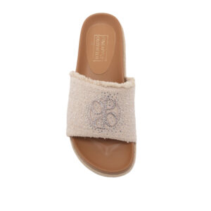 RAJIV 渡假風毛尼水鑽平底拖鞋